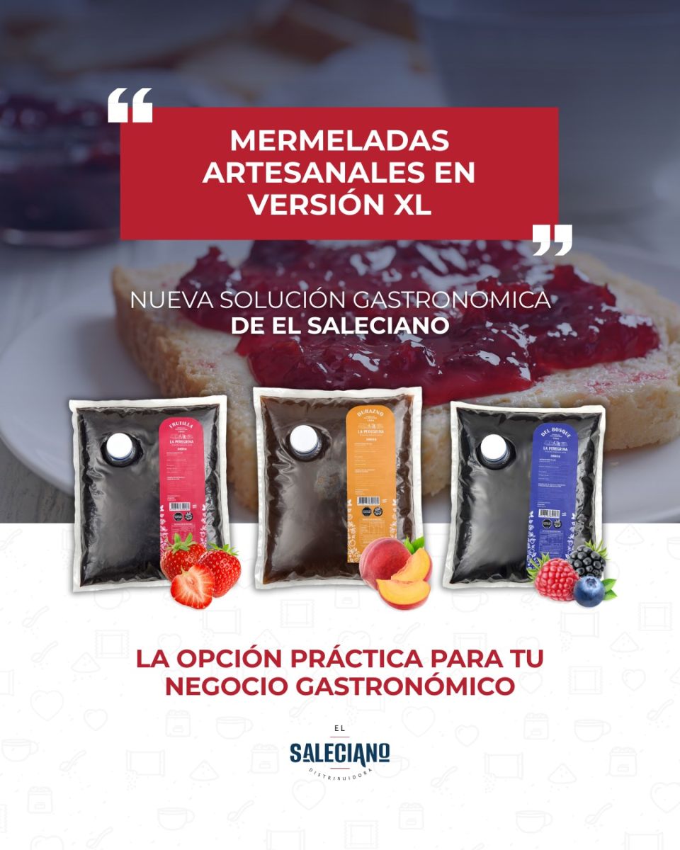 Distribuidora El Saleciano acaba de incorporar las mermeladas de La Peregrina en sus variedades frutilla, durazno, frutos rojos y miel, todas en formato pouch XL pensado para gastronomía. Una forma concreta de acompañar este nuevo rumbo, con insumos gastronómicos que estén a la altura de lo que hoy se valora.
